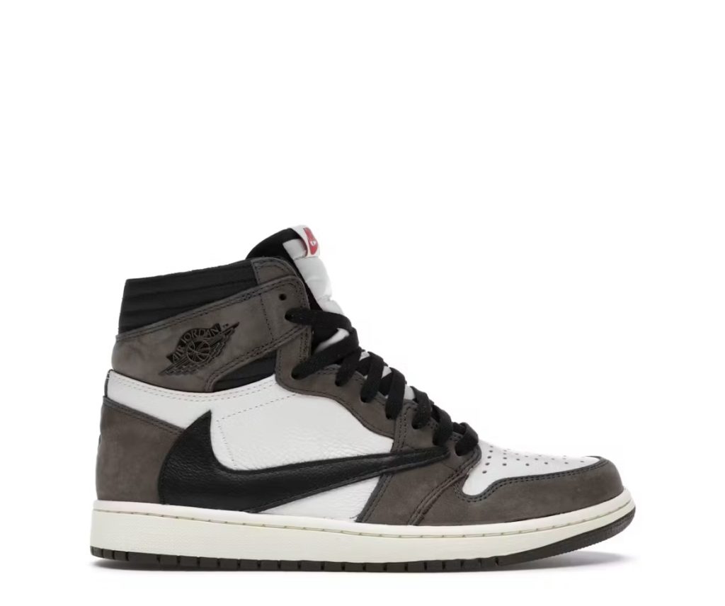 The Travis Scott x Air Jordan 1 High OG “Mocha” features the iconic reverse Swoosh, premium brown suede overlays and black leather panels. Released in 2019, it became one of the most influential Jordan collaborations of the decade.